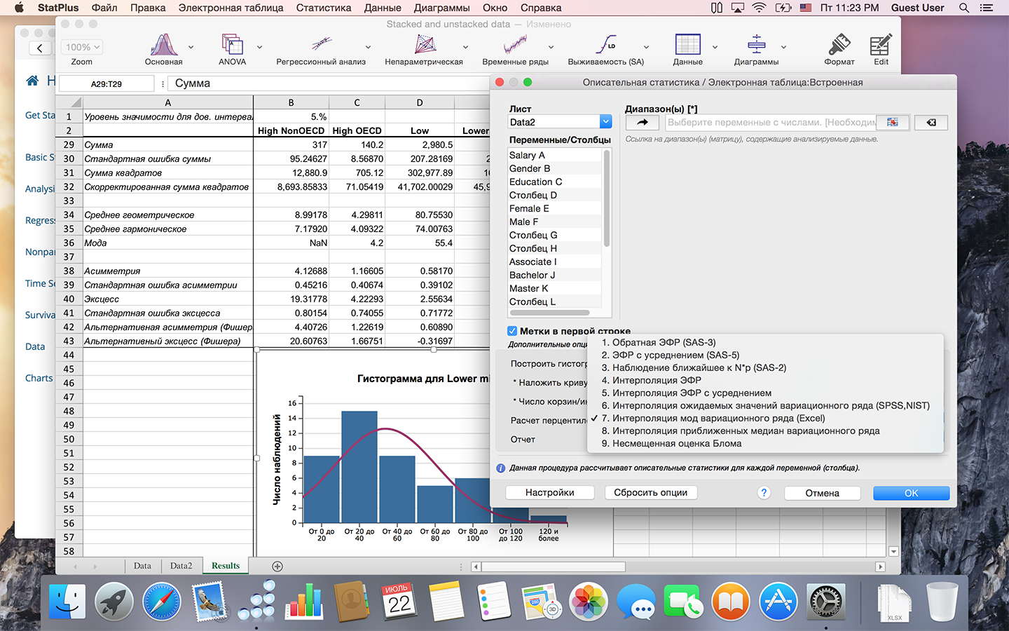 В StatPlus:mac предусмотрена интеграция с Microsoft Excel и Apple Numbers.